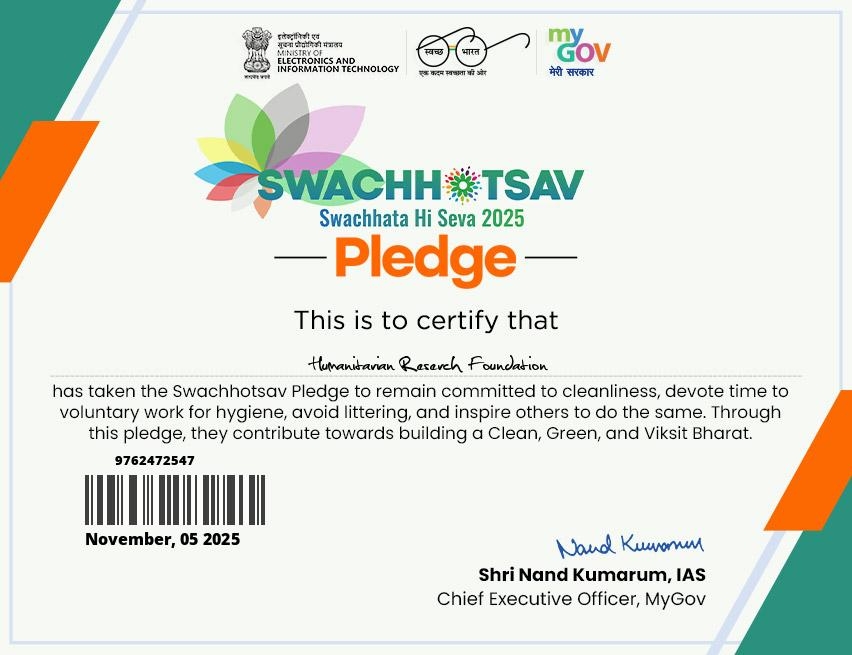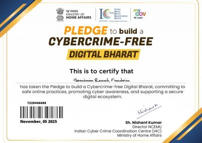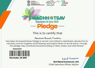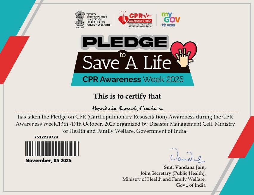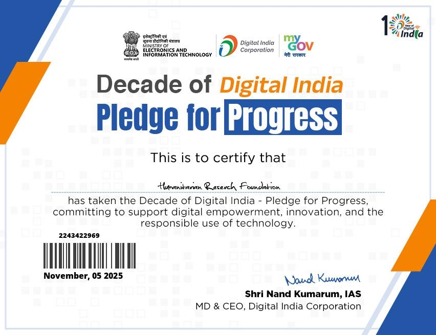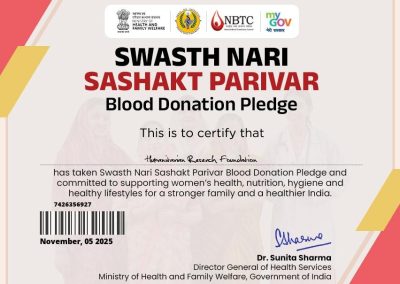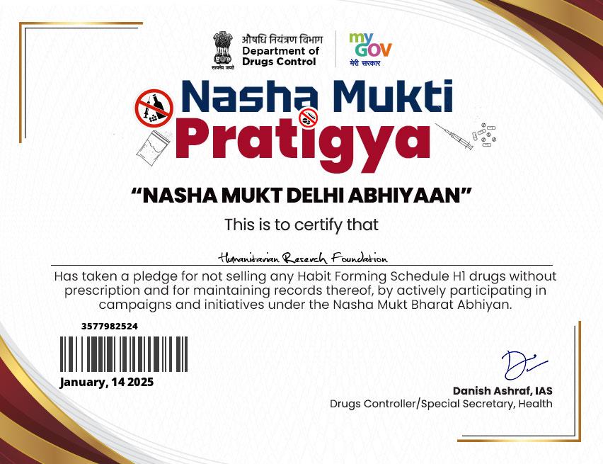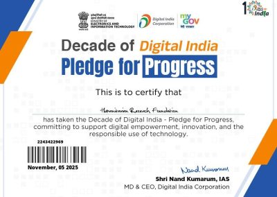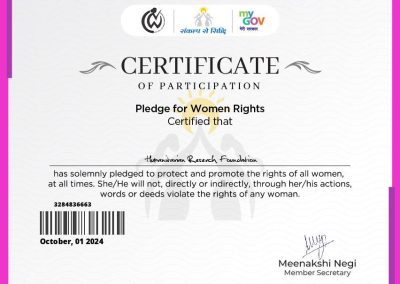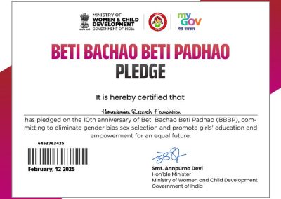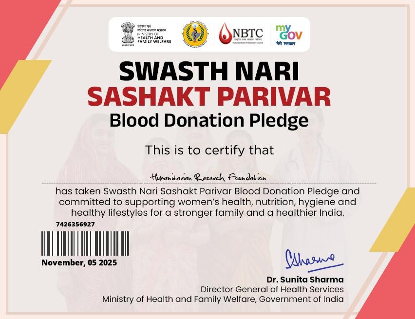 Humanitarian Reserch Foundation Awards & Recognition Women Rights Unani Medicine System Swasth Dhara Toh Khet Hara Swachh Bharat Mission Say No to Child Labour and Rise Against it Niti Aayag National Human Rights Commission Nasha Mukti Pratigya My Millets For My Health Ministry of Education Dignity for Seniors Blood Donation Beti Bachao Beti Padhoe APNAIYE NANO UREA Amrit Bhoomi Agenist child Marrige Swasth Nari Sashakt Parivar Swachhata hi Sewa Save a Life – CPR Promote Legal Adoption promote Homoeopathy Fire Safety at Healthcare Facilities Energy Conservation Decade of Digital India Cybercrime-free Digital Bharat Cooperative Agriculture
