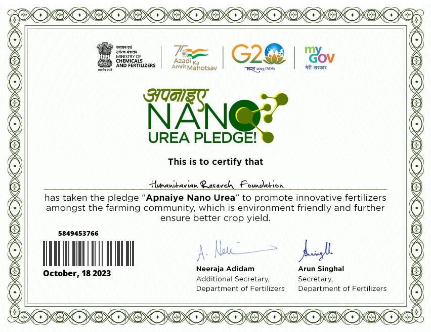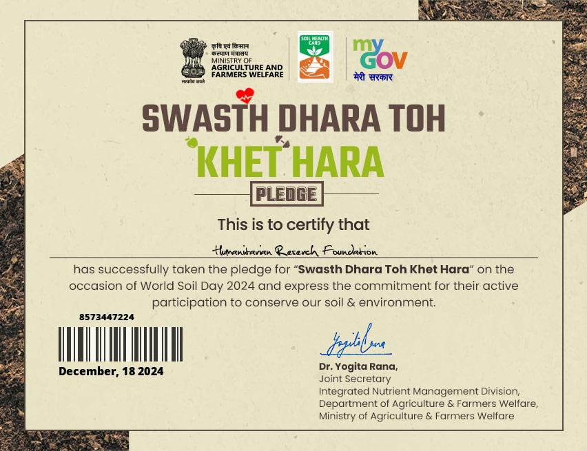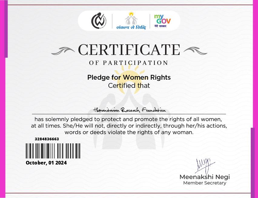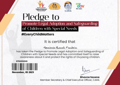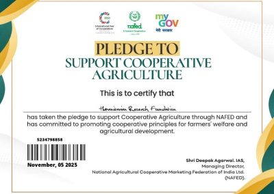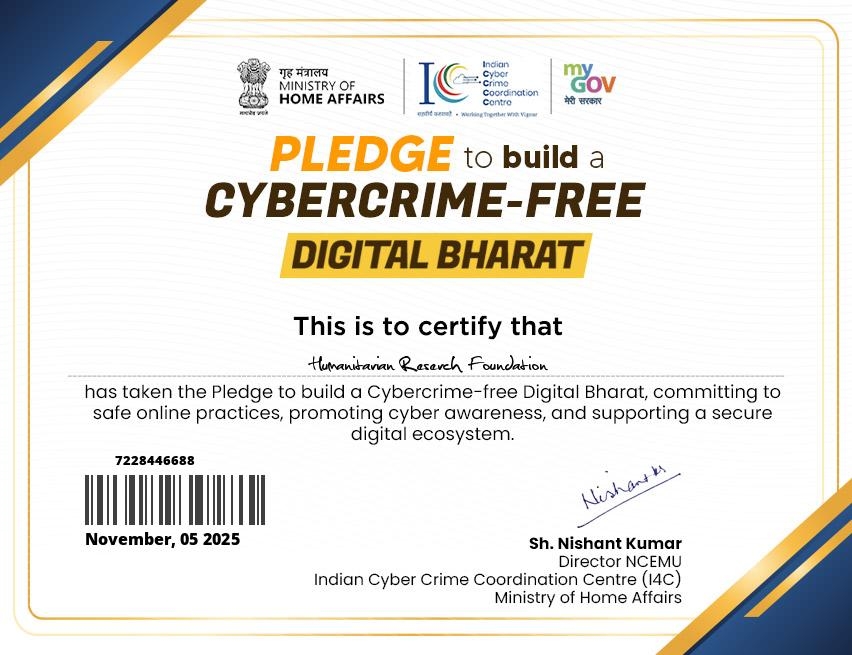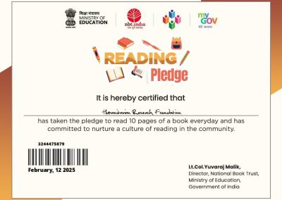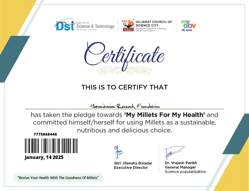 Humanitarian Reserch Foundation Awards & Recognition Women Rights Unani Medicine System Swasth Dhara Toh Khet Hara Swachh Bharat Mission Say No to Child Labour and Rise Against it Niti Aayag National Human Rights Commission Nasha Mukti Pratigya My Millets For My Health Ministry of Education Dignity for Seniors Blood Donation Beti Bachao Beti Padhoe APNAIYE NANO UREA Amrit Bhoomi Agenist child Marrige Swasth Nari Sashakt Parivar Swachhata hi Sewa Save a Life – CPR Promote Legal Adoption promote Homoeopathy Fire Safety at Healthcare Facilities Energy Conservation Decade of Digital India Cybercrime-free Digital Bharat Cooperative Agriculture